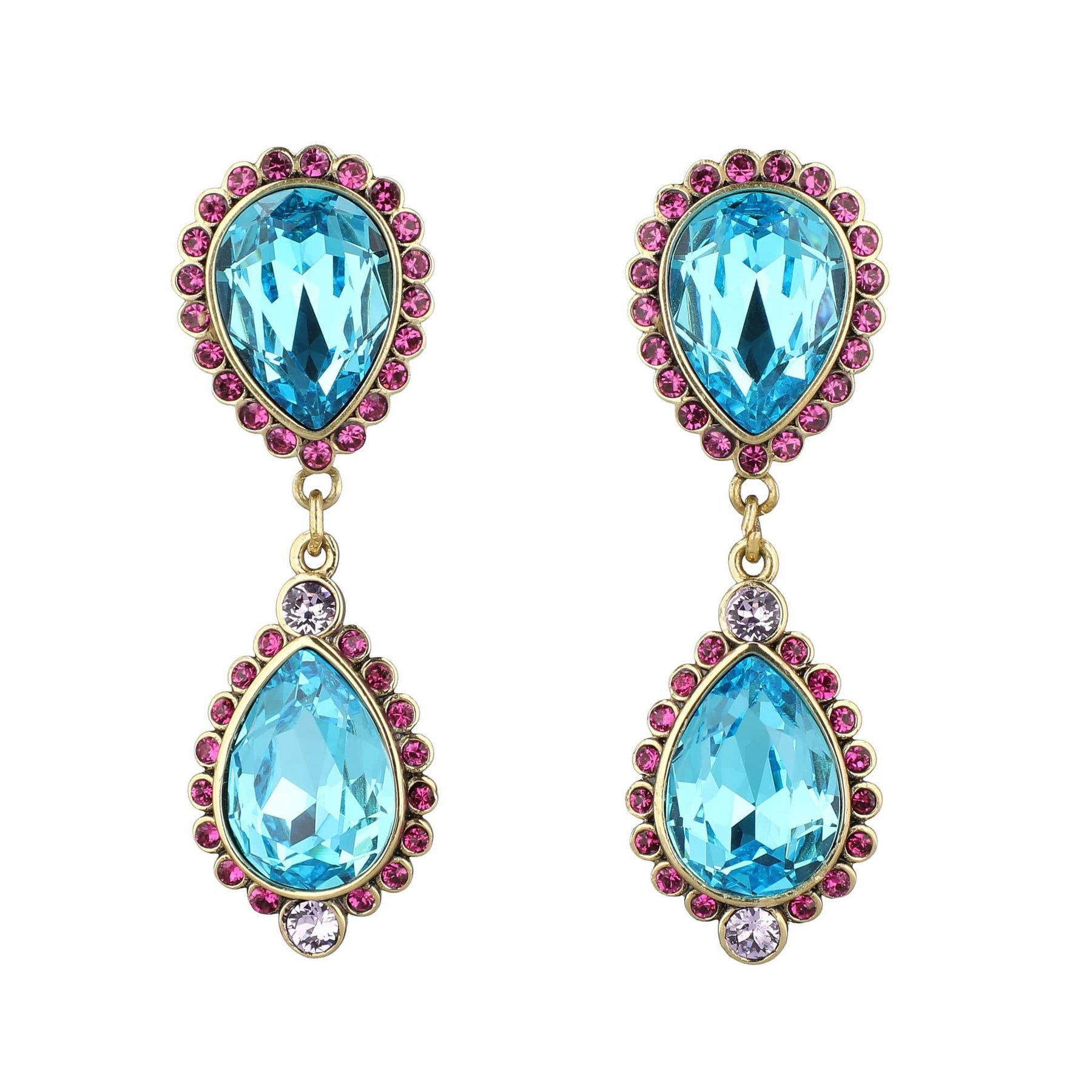 The elongated double-drop design creates graceful movement and light-catching brilliance, framing the face with color and confidence. Whether worn with the matching necklace or styled on their own, these earrings deliver that unmistakable Heidi Daus effect: uplifting, expressive, and impossible to ignore.