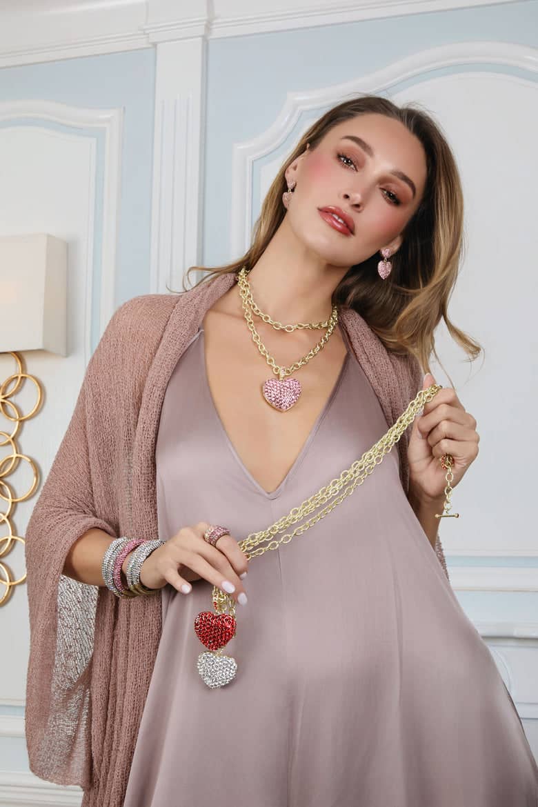 Because love is never one-dimensional, the heart pendant is also a versatile enhancer, allowing you to wear it your way—suspended from its luxurious chain, or paired with your favorite beads, pearls, strands, cords, or chains. The crystal-accented toggle closure adds beauty and security, while the generous length lets you wear it long and dramatic or doubled for a more intimate, layered look.