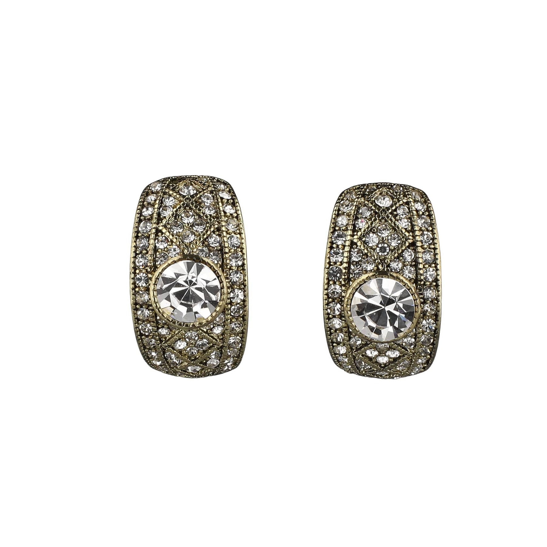 Each earring captures the structured beauty of the era with impeccable symmetry and a lavish arrangement of hand-set crystals. The domed silhouette creates a bold yet wearable statement, while the radiant crystals dance with every turn of your head, ensuring all eyes are drawn to your brilliance. Whether you’re stepping into a candlelit dinner, a night at the theater, or simply your own fabulous moment, these earrings bring that irresistible “just one more glance” kind of glow.