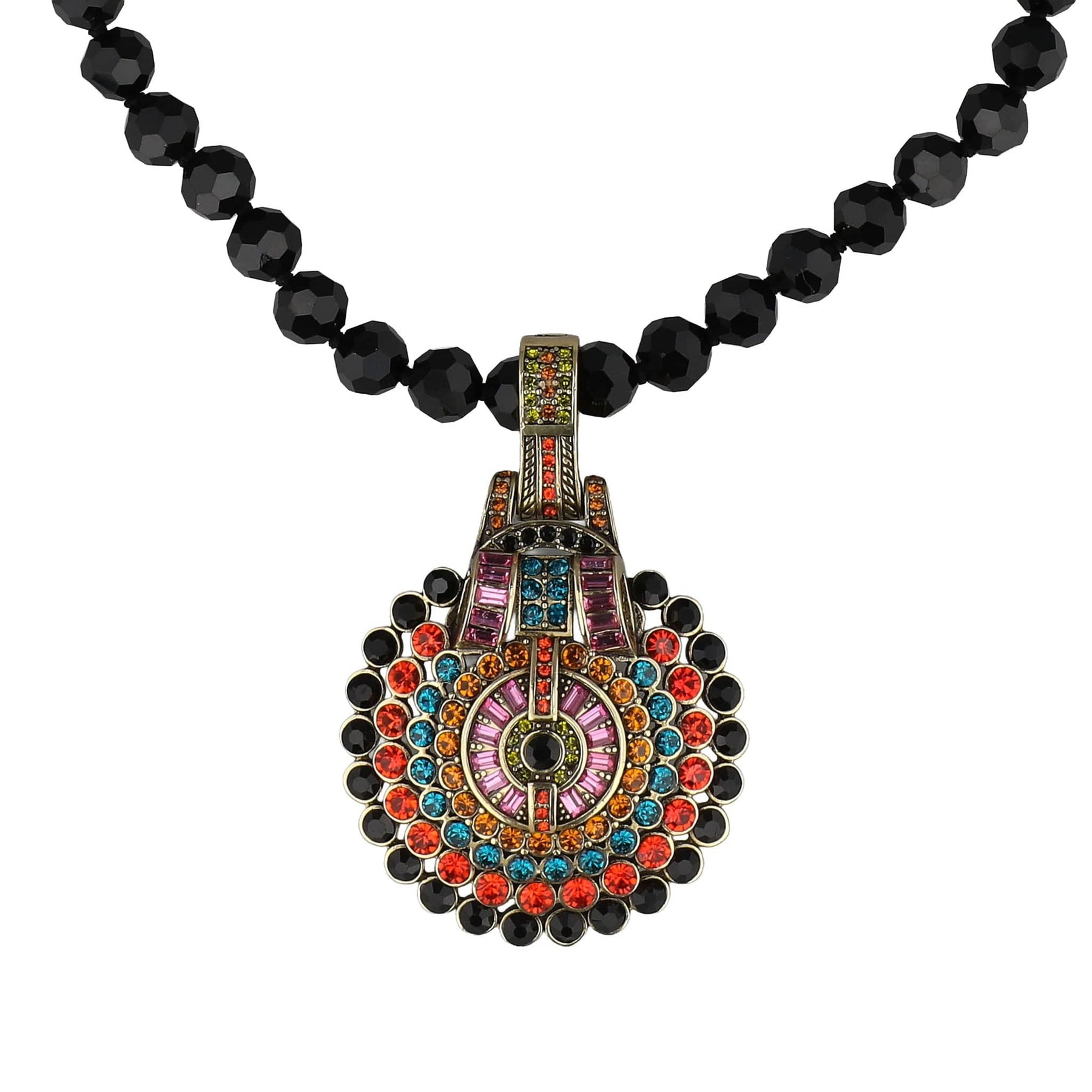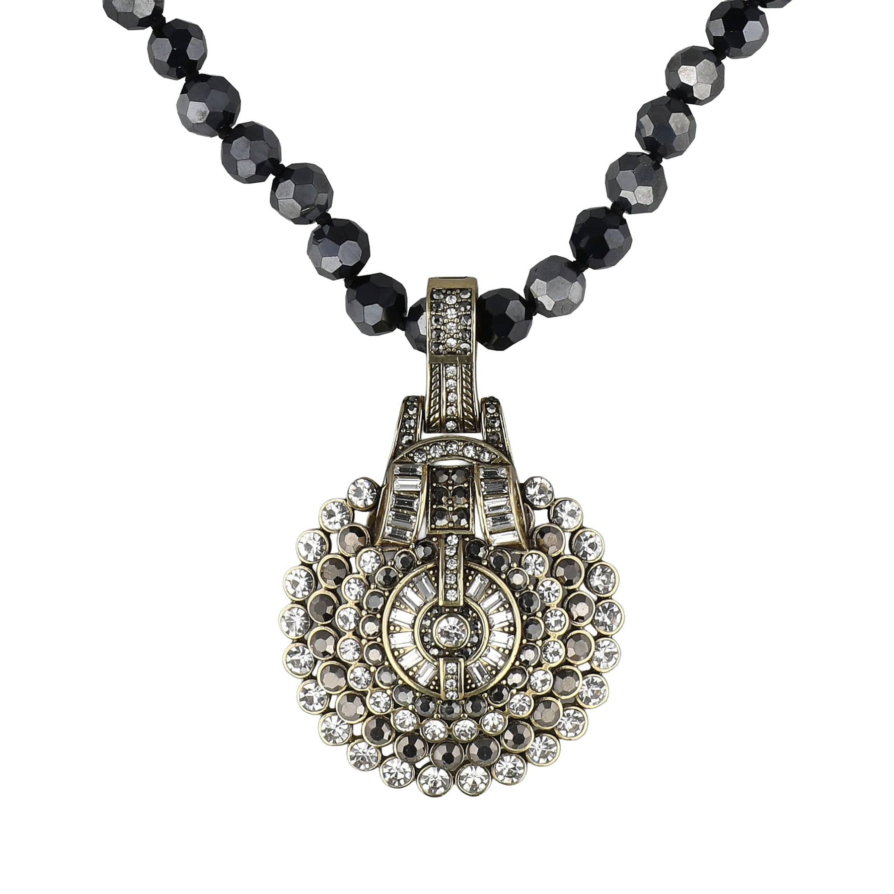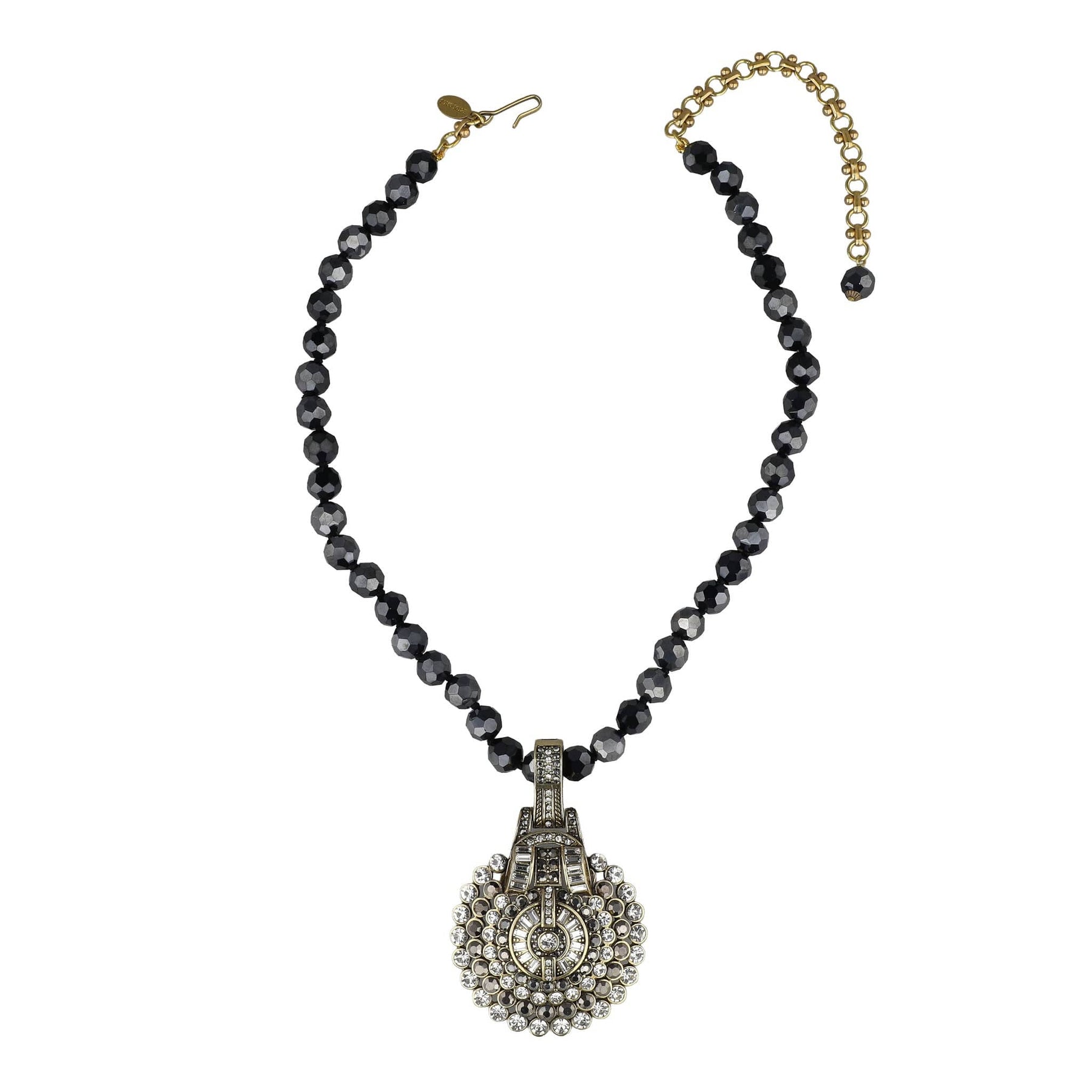 A sculptural, crystal-rich statement that radiates sophistication from every angle. Wear it with the included beaded strand for pure vintage drama, attach it to other chains, cords, or strands for endless styling magic, or let it take center stage as a bold standalone enhancer.
