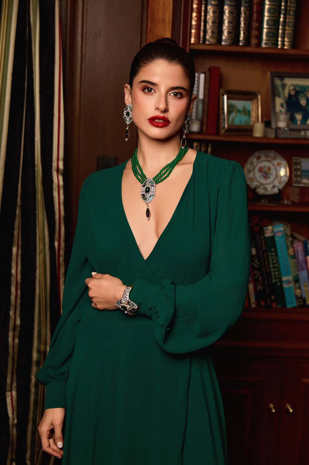 A dramatic 4-inch drop pendant, crowned with a jewel-toned marquise accent, adds luxurious movement that feels both vintage and breathtakingly modern. This is the piece that stops the room, prompts the compliments, and elevates your holiday wardrobe from festive to unforgettable.