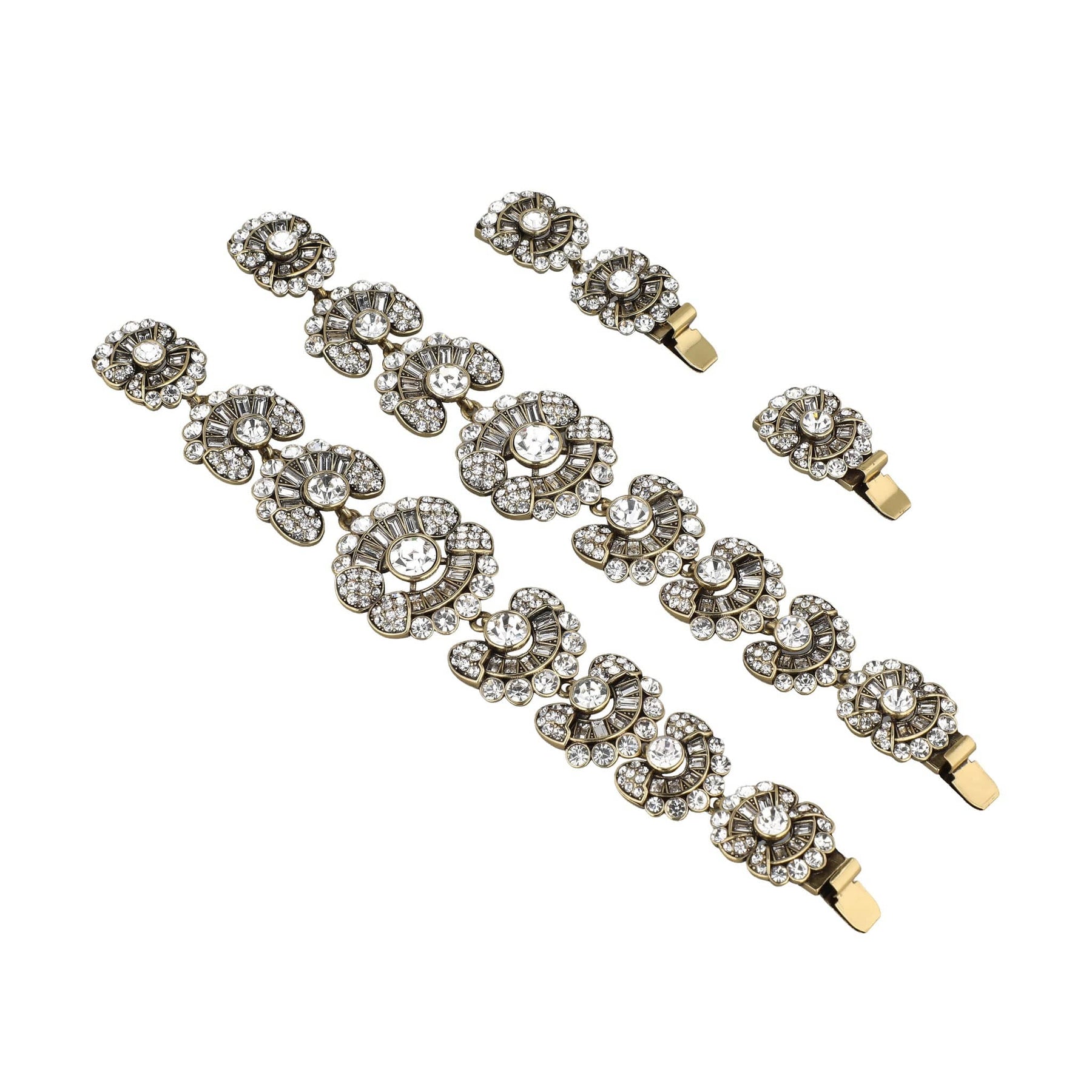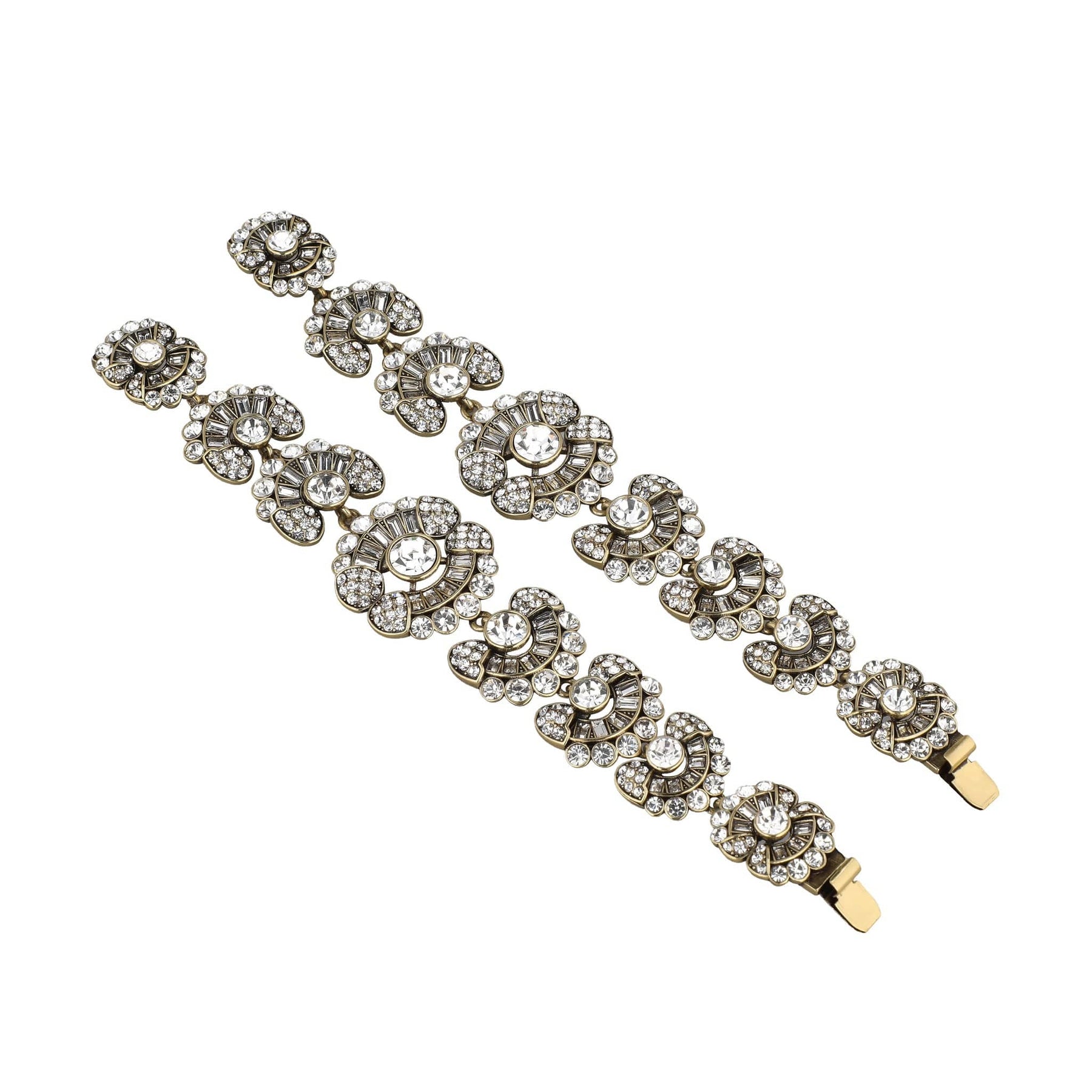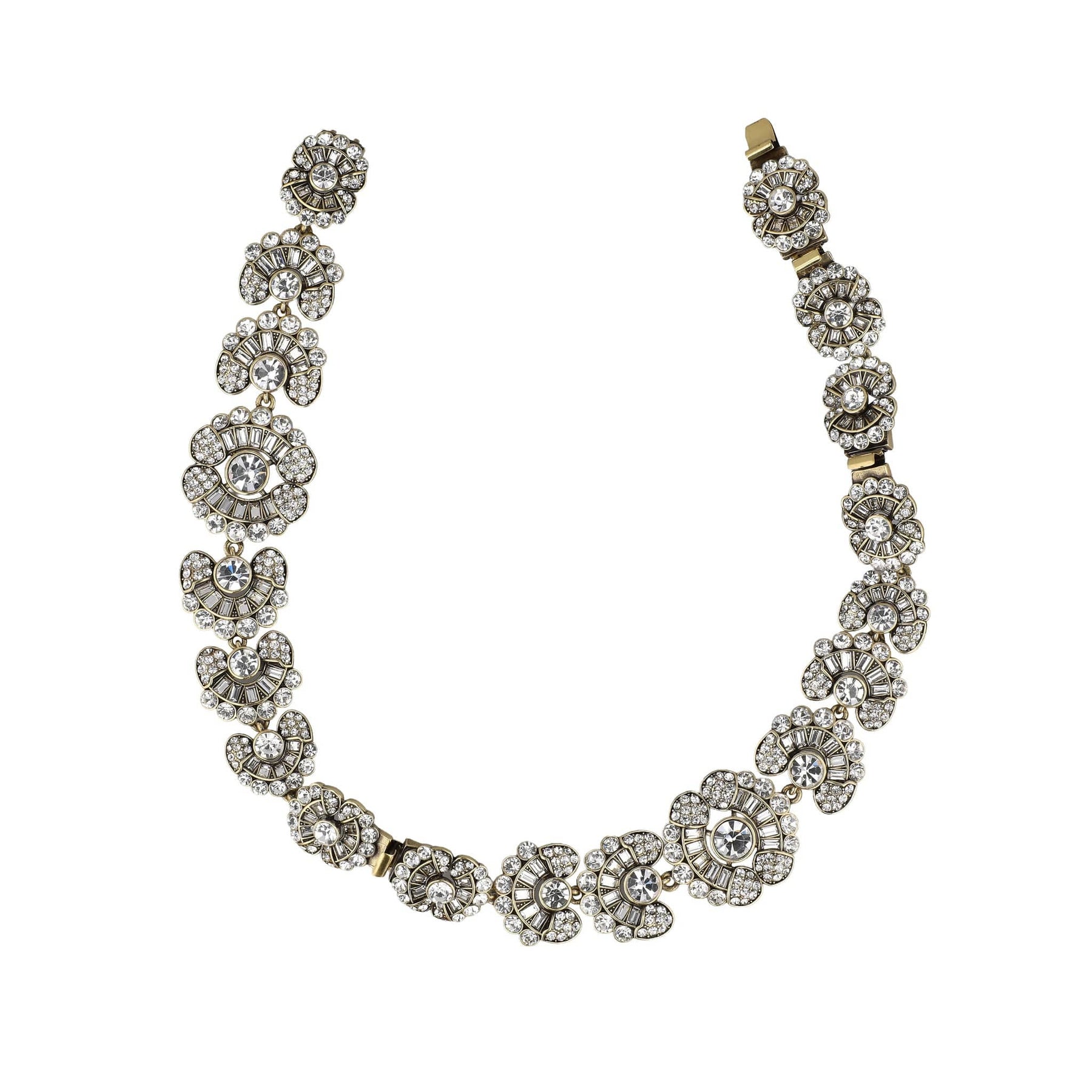 Rendered in radiant clear crystals set within vintage-inspired floral medallions, this magnificent design evokes the splendor of heirloom jewels worn at grand galas, opera houses, and unforgettable evenings under dazzling chandeliers. Each station glitters with a harmonious blend of round brilliant crystals and delicate baguette accents, creating a dimensional sparkle that captures light from every angle.