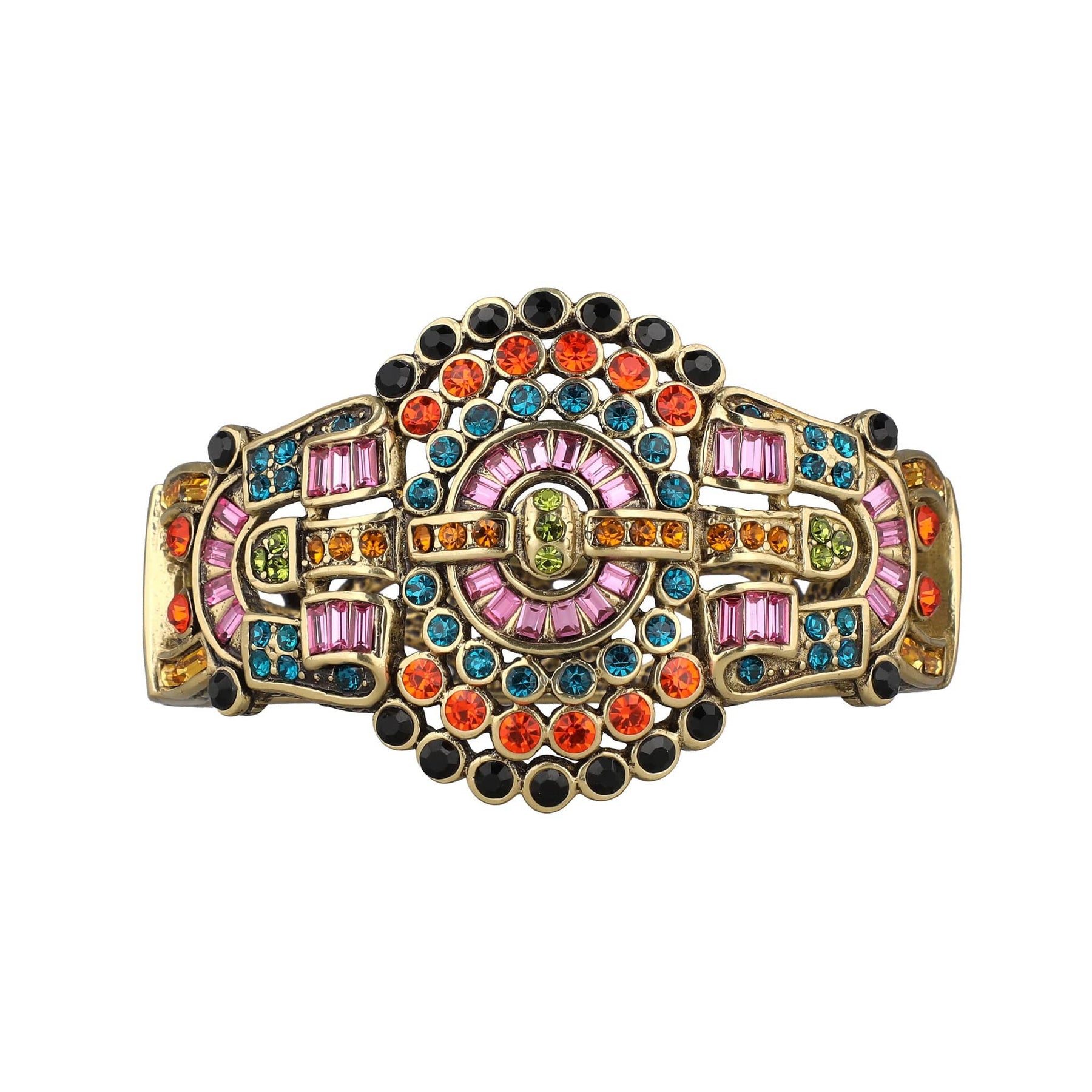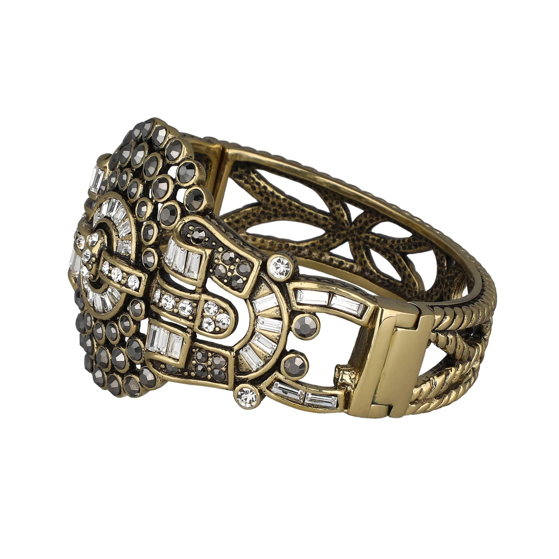 A dazzling mosaic of hematite and clear crystals comes to life in geometric perfection, framed in Heidi’s signature bronze tone. The bracelet’s intricate pattern evokes the gilded grandeur of a 1920s ballroom—where champagne sparkled, music soared, and fashion ruled. Slip it on with your favorite evening dress or let it transform a simple sweater into a showstopper. However you wear it, this bracelet doesn’t whisper luxury—it proclaims it.
