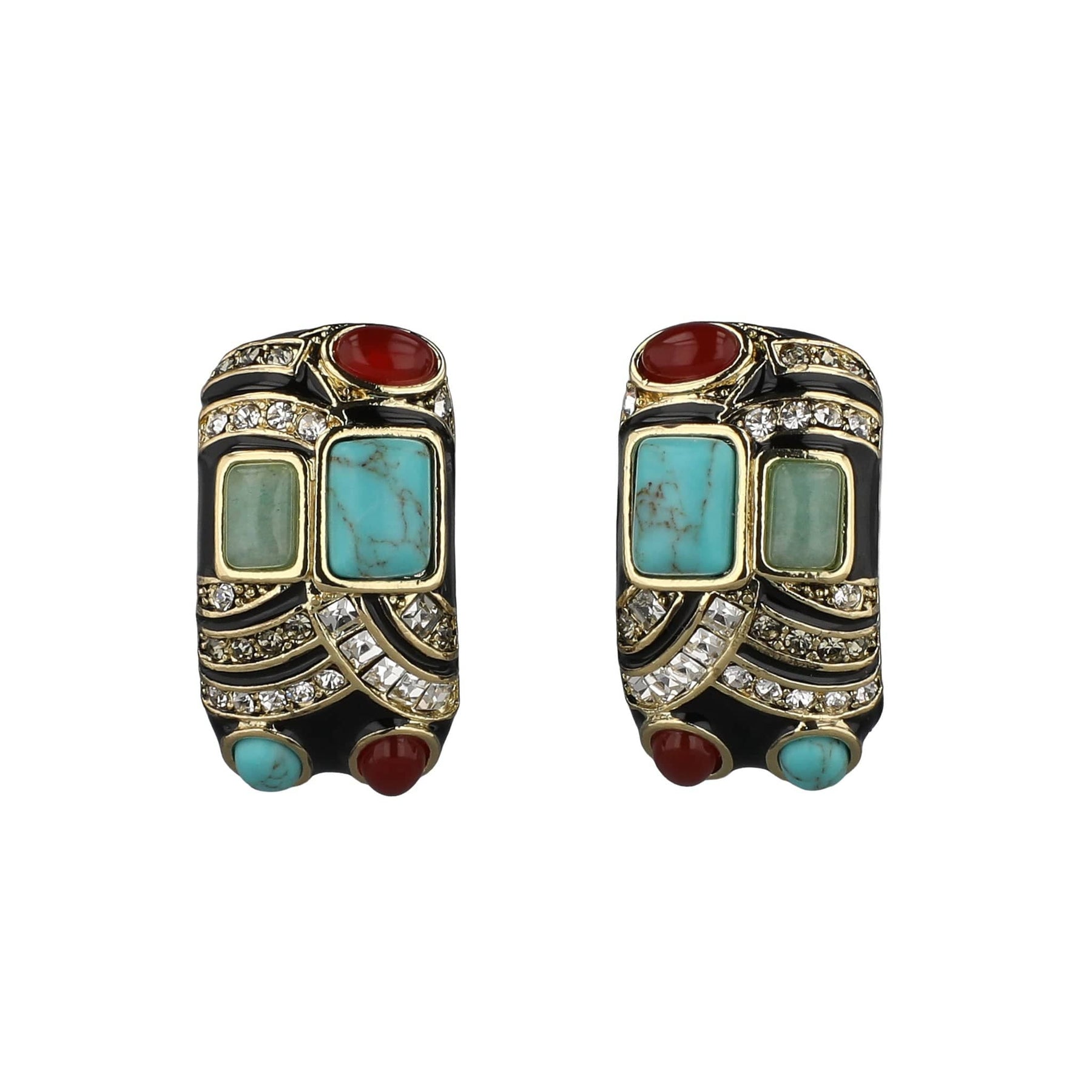 HEIDI DAUS® “The Modernist” Turquoise, Carnelian & Aventurine Art Deco Earrings