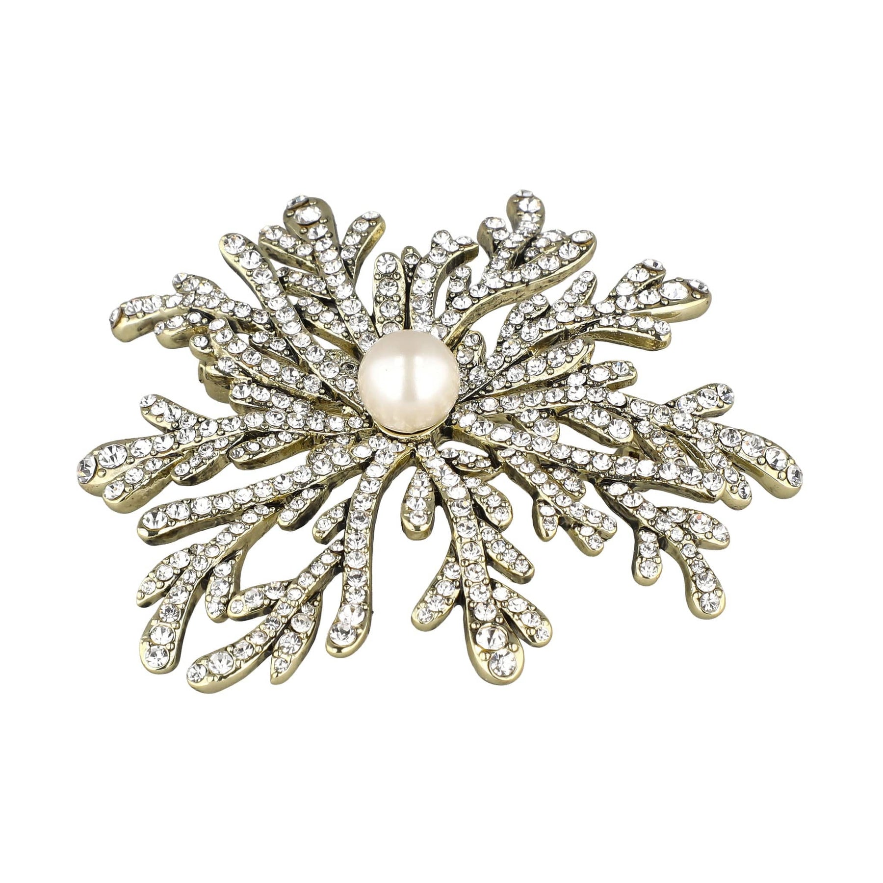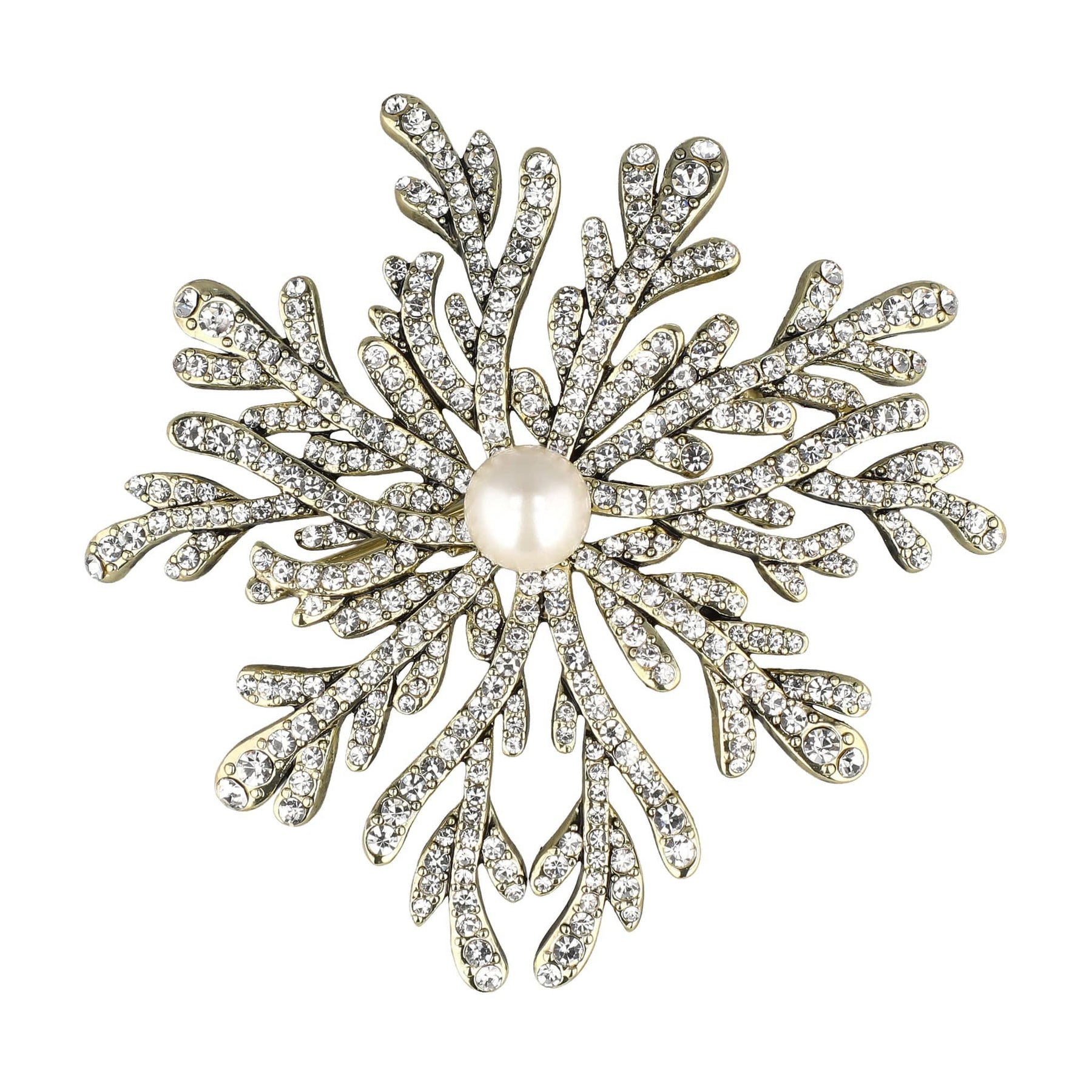 Like the moment the season’s first snow begins to fall, this brooch feels enchanting, serene, and utterly mesmerizing. Hundreds of clear, shimmering crystals are hand-pavéd along gracefully branching arms, creating a breathtaking burst of sparkle that dances in the light from every angle. At the center, a soft white bead glows like a pearl dropped gently into fresh snow—an elegant nod to winter’s quiet beauty.