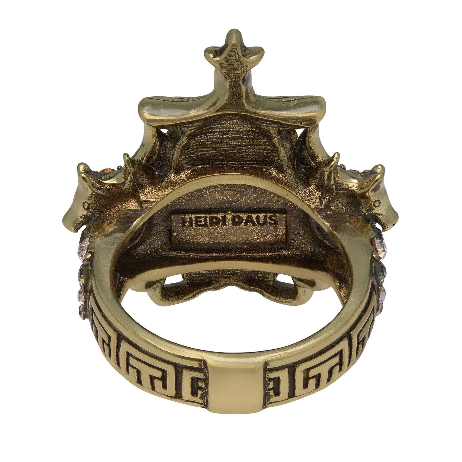 A stunning symbol of protection and power, Heidi's "Collective Wisdom" Crystal Resin Chinoise Ring is drop dead fabulous. Featuring a delicately detailed pagoda design with clear crystal accents- this style brings the exotic charm of the far east to any look! Pair with the matching earrings and necklace to complete your look.