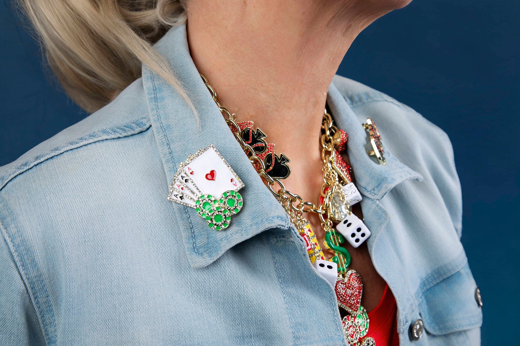 Whether pinned to a tailored blazer for a night out, sparkling on a little black dress, or adding a conversation-starting flourish to your everyday look, this design delivers undeniable charm and confidence. After all, the greatest style secret is knowing that you already hold the winning hand.