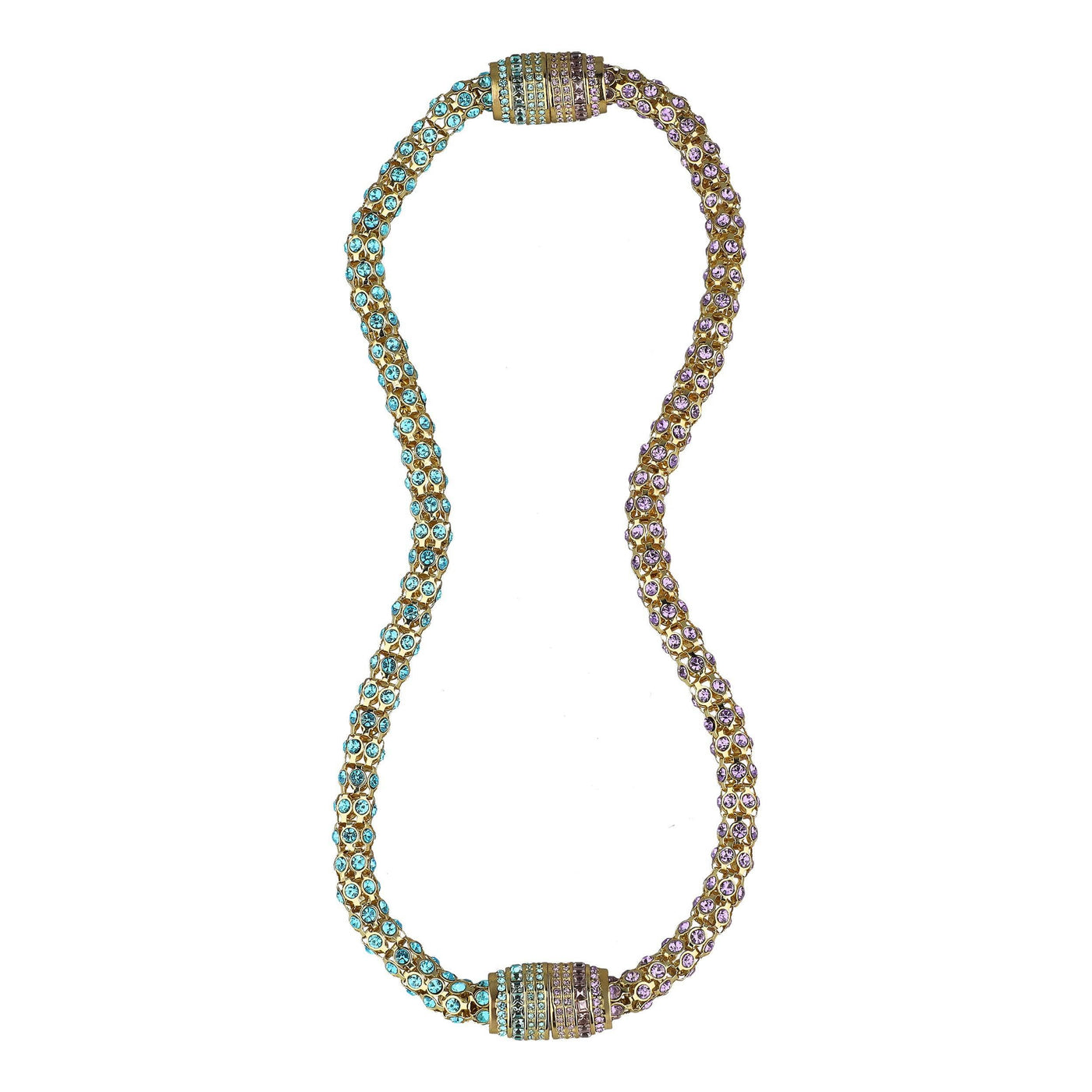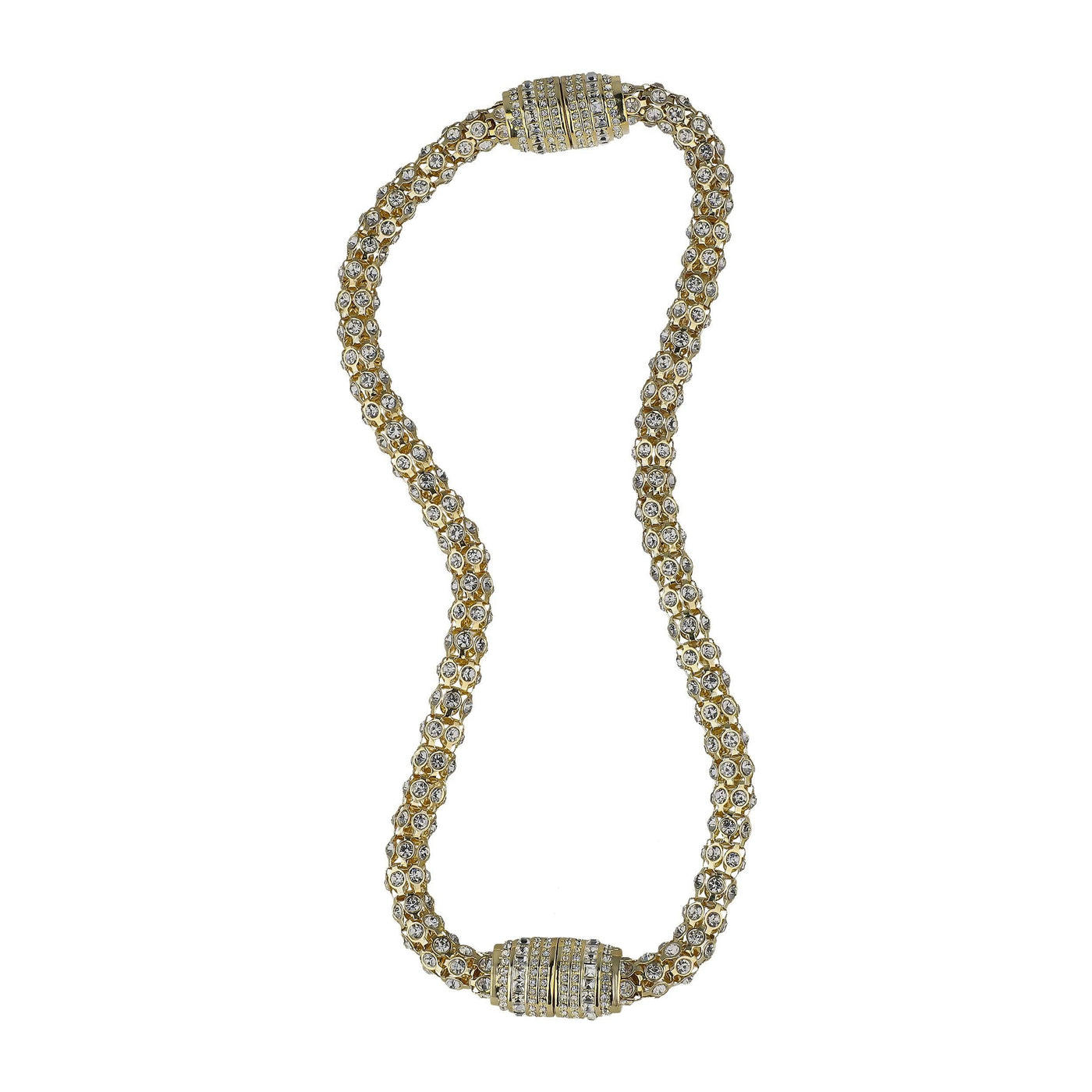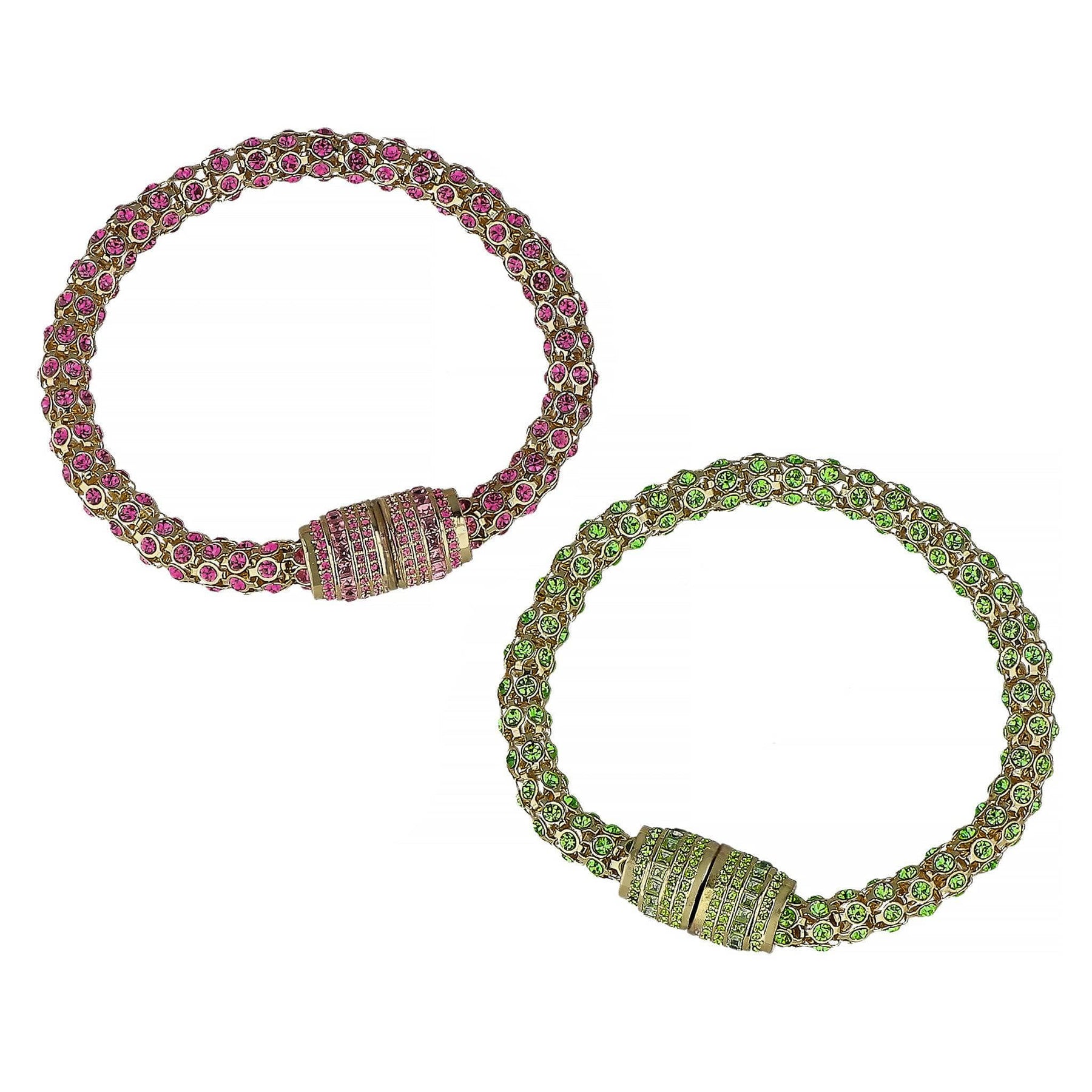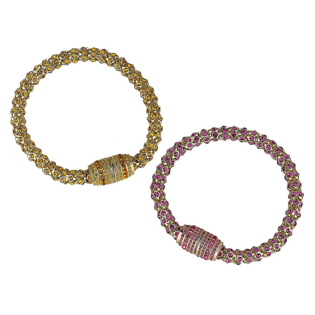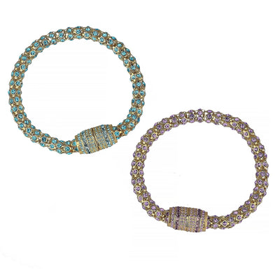 Wear each sparkling strand as two standalone bracelets, or connect them together to create a bold, pavé-encrusted necklace. The magnetic barrel clasp—brilliantly decked out in coordinating crystals—adds both security and style with a satisfying click. Perfect for travel, everyday luxury, or special events where all eyes are on you.