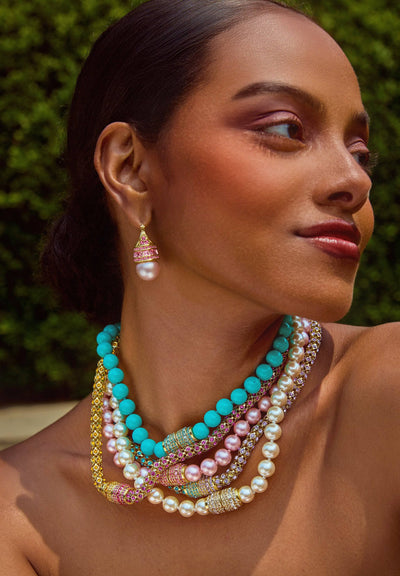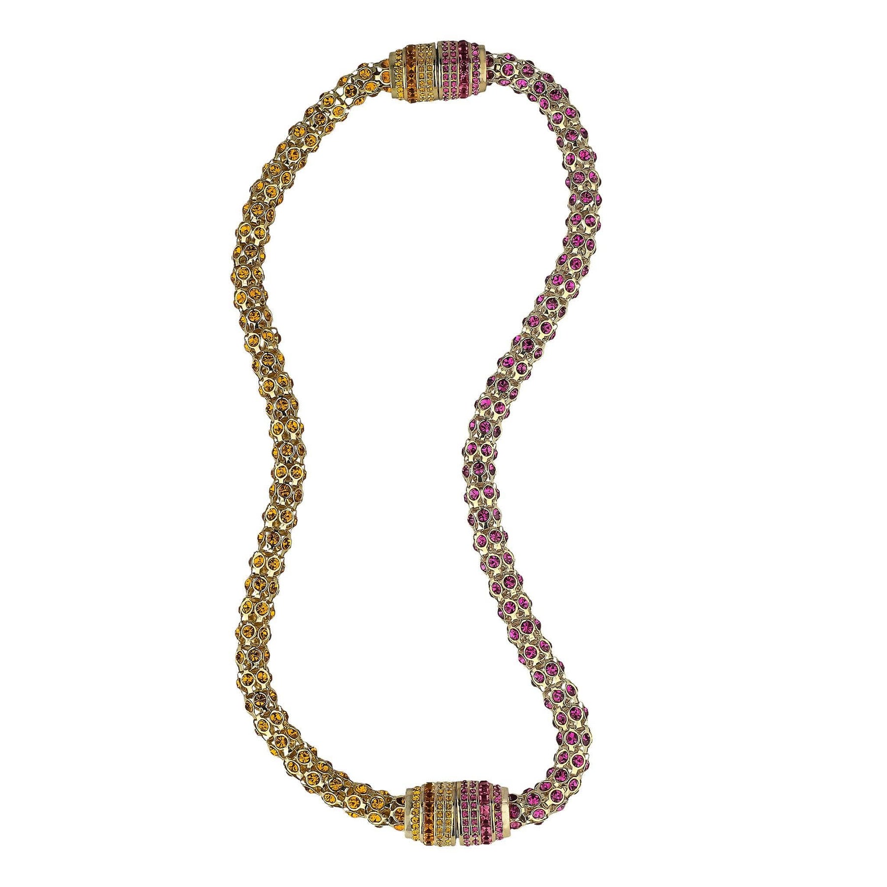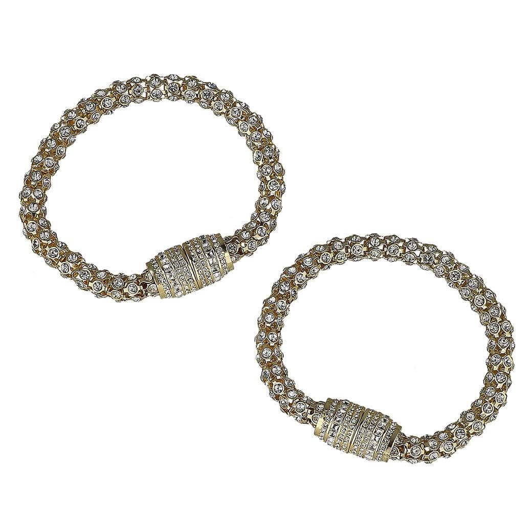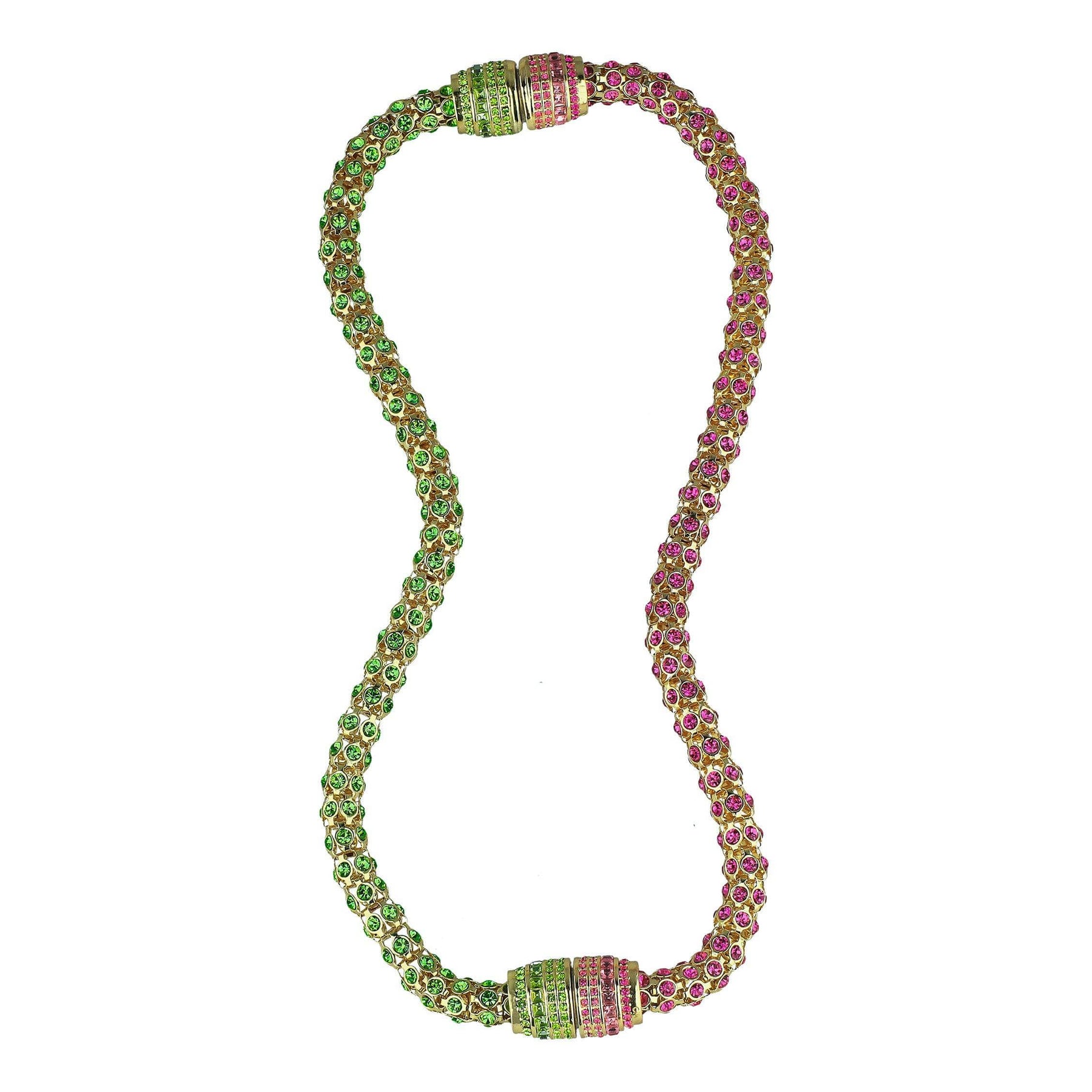Wear each sparkling strand as two standalone bracelets, or connect them together to create a bold, pavé-encrusted necklace. The magnetic barrel clasp—brilliantly decked out in coordinating crystals—adds both security and style with a satisfying click. Perfect for travel, everyday luxury, or special events where all eyes are on you.