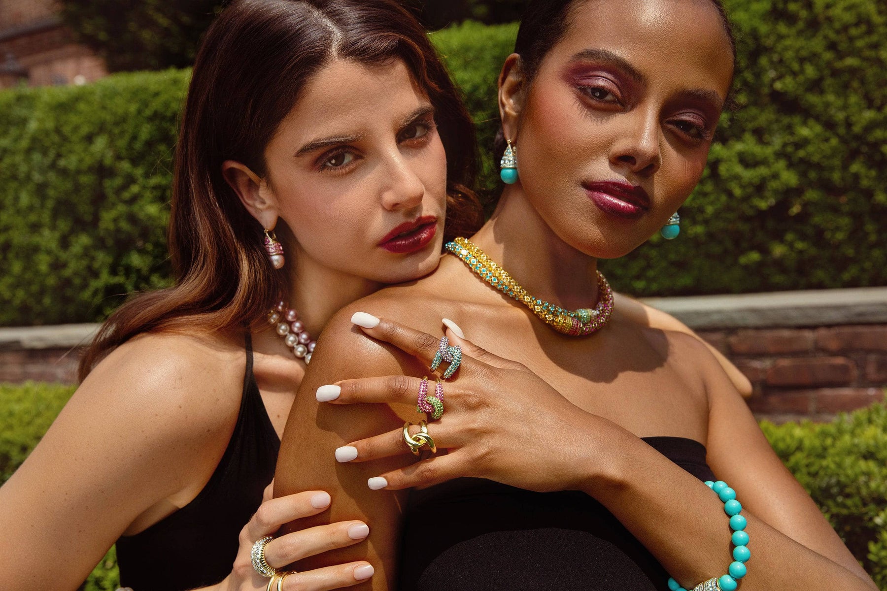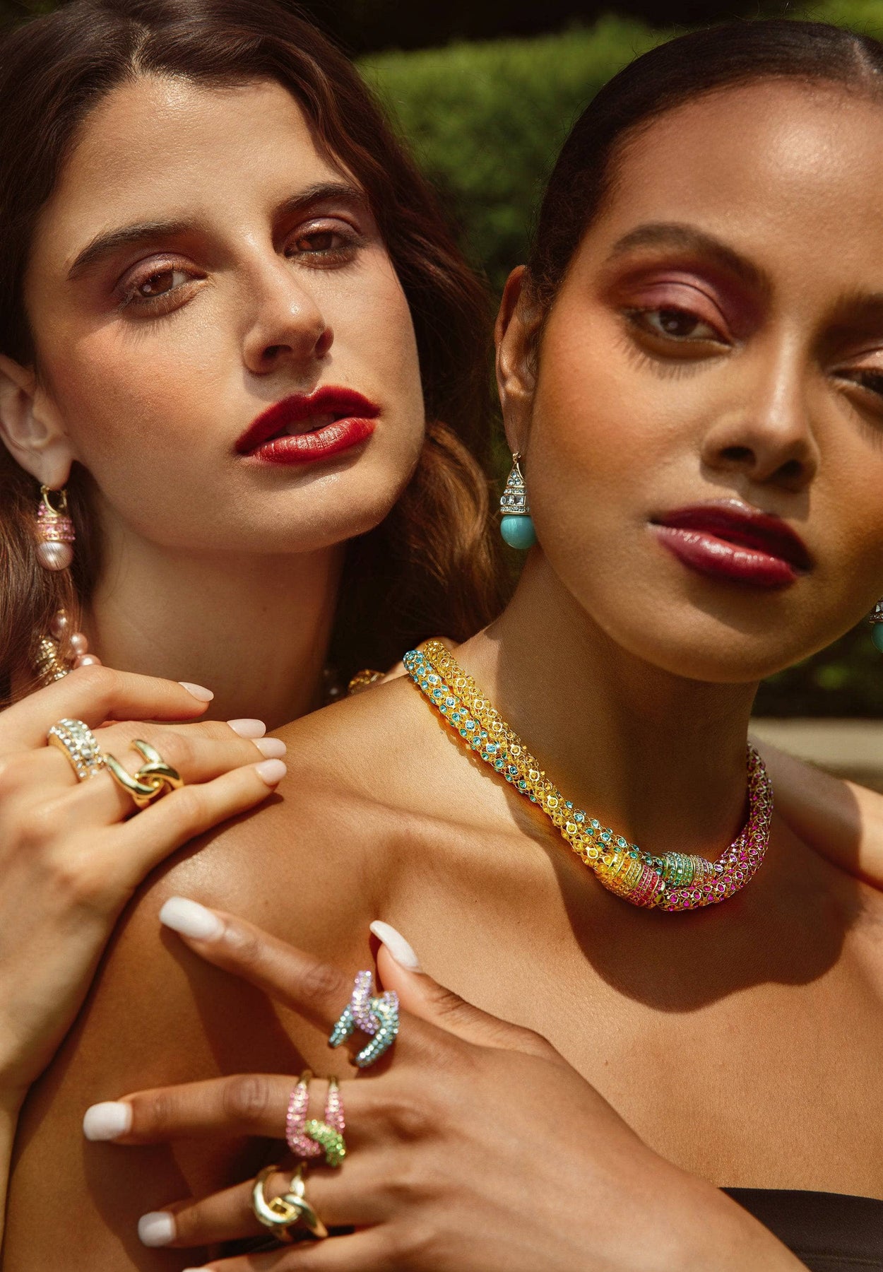 Offered in four radiant colorways—Peridot/Rose, Aquamarine/Violet, Fuchsia/Topaz, and classic Clear—this set delivers joyful sparkle and bold brilliance to any wardrobe. Available in both small and large sizes for the perfect fit.