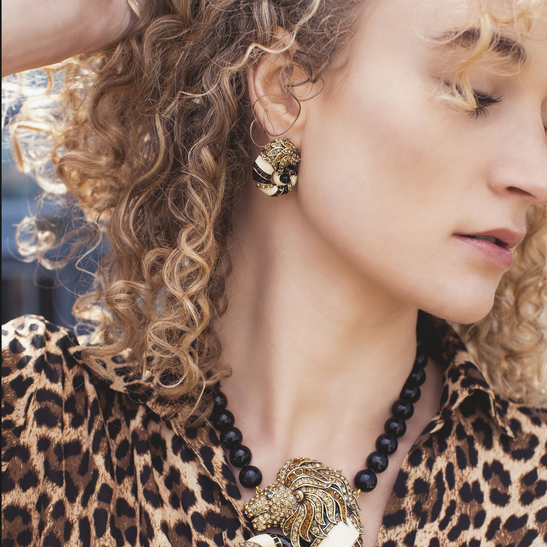 Command attention with every turn of your head in our “Jungle Love” Crystal & Enamel Lion Button Earrings—designed for the woman who leads with strength, style, and unapologetic sparkle.