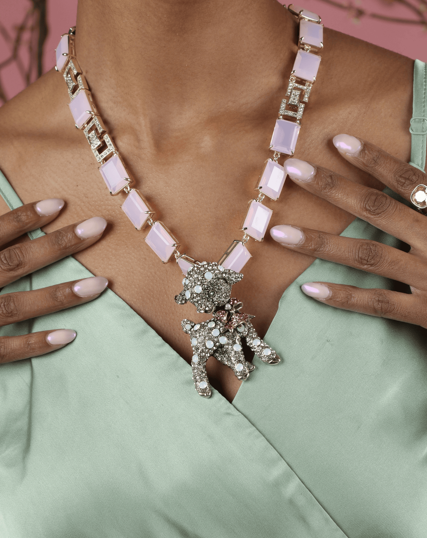 The “Mairzy Doats” Crystal Little Lamb Pin is a love letter to spring—when the world softens, flowers bloom, and simple pleasures return to center stage. Rendered in luminous cream beads and glowing white opal crystals, this charming lamb is brought to life with delicate touches of rose and light rose sparkle, finished with a sweet bow that feels both nostalgic and celebratory.